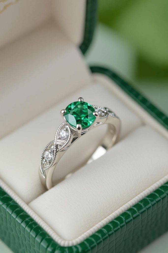 Diamond and Emerald Engagement Ring