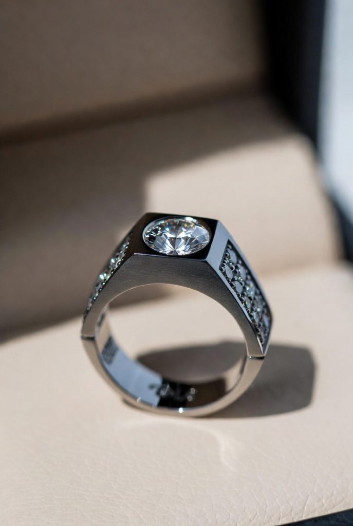 Each design begins with the careful selection of exceptional diamonds. Every stone is chosen for its fire, clarity, and structure, ensuring a presence worthy of lifelong wear. From classic solitaires to bold contemporary bands, every ring is shaped with a strong masculine identity while highlighting the natural perfection of the diamond.